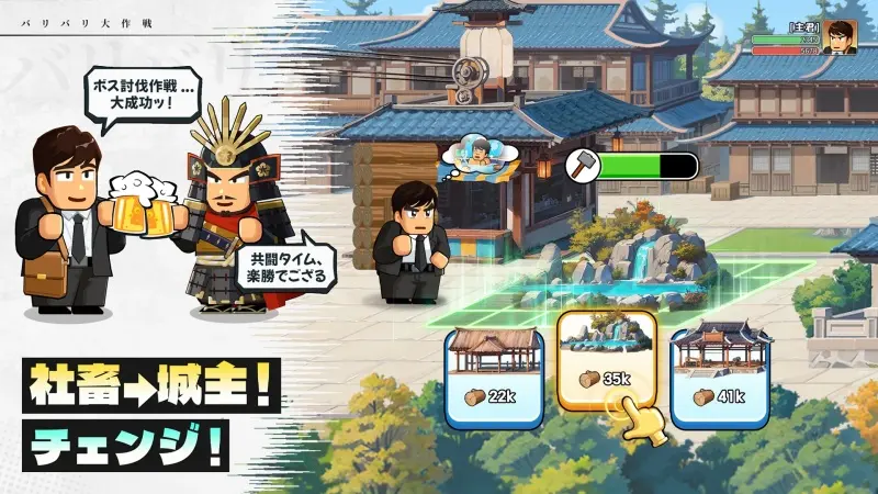 『バリバリ大作戦』は、そんな“ゆるさ”と“触りたくなる気持ちよさ”が同居している経営SLGです。異世界転生したサラリーマンが領主として資源を集め、街を発展させ、武将たちと天下統一を目指していきます。