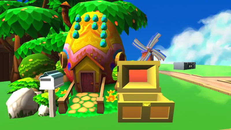 島はタマゴ形の家、虹色の風船、ゆらゆら揺れる花畑などフォトスポットだらけ。スクリーンショットを撮るだけでも楽しい設計です。