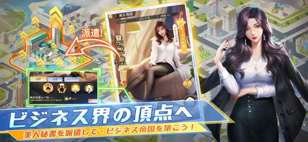 また、個性的でユニークな同僚たちが多数登場し、ただ美女を楽しむだけでなく、戦略的な要素も盛り込まれています。
