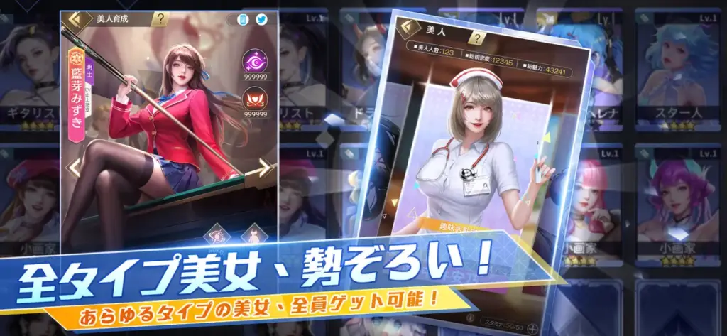 メッセージ機能があり、さまざまな会話を楽しむこともできるため、恋愛ゲームのように美女たちとの交流を深めるのもおすすめです。