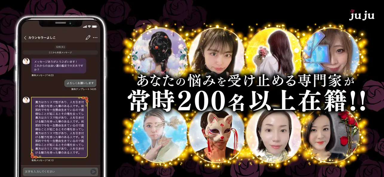 『寿寿(JUJU)』は、特に「恋の悩み」に特化したチャット占いアプリなんです。