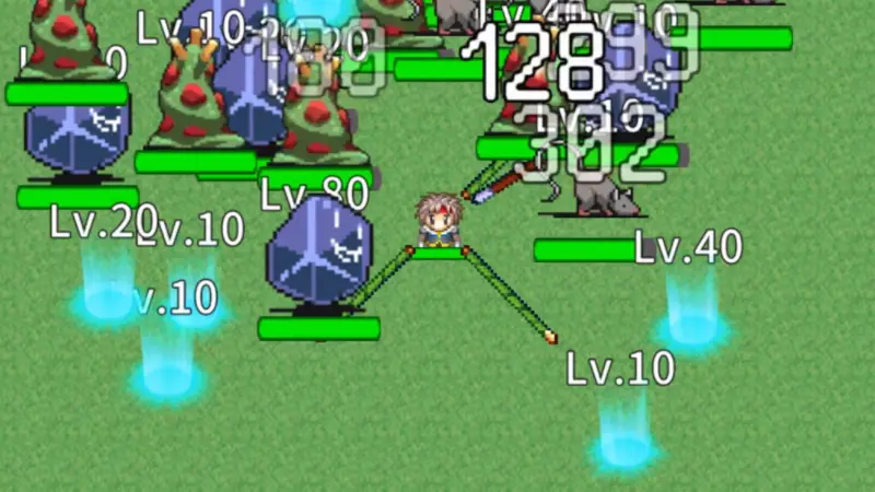 レトロタッチのグラフィックと、クルクル回転する武器を使った直感的な操作が特徴です。スマホゲームの中でも「ちょっとした空き時間で遊べる」「放置で育成が進む」といったカジュアル性を備えつつ、育成や戦略の奥深さも併せ持っています。