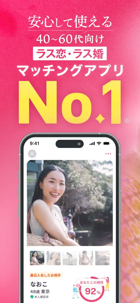 ラス恋の最大の特徴は、利用者を40歳以上に限定している点です。これにより、若い世代とのジェネレーションギャップや価値観の違いに悩むことなく、同世代の相手と落ち着いた関係を築くことができます。