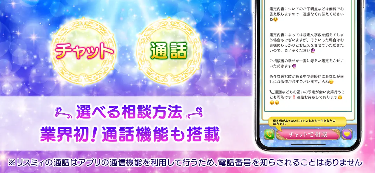 「リスミィ」はスマホ1つで、気軽に運勢や人生のアドバイスを受けられるチャット占いアプリです。