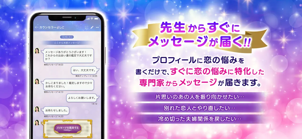 恋人との関係に悩む場合、ユーザーはアプリ内で相談内容を入力すると、占いの専門家がタロットや占星術などを用いて具体的なアドバイスを提供します。