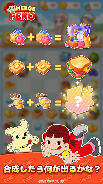 『マージペコ:ペコちゃん、ガチかわ〜!』は、アイテムを“マージ(合成)”して注文を完成させ、稼いだお金で店舗をデコレーション・修理しながら拡張していく、マージパズル×店舗運営タイプのゲームです。